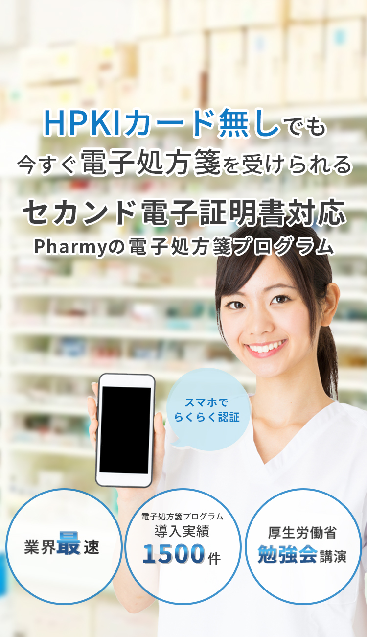 電子署名は処方箋ごとに行う必要がありますが、セカンド電子署名対応のPharmy Connect(ファーミーコネクト)なら、スマートフォンでもICカードでも1日1回の認証だけで1日中電子署名を行うことが可能です。