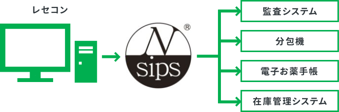 ※NSIPSとは、日本薬剤師会が提案する薬局向けコンピュータシステム間の連携システムです。