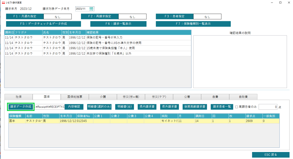4介護の電子請求にも対応し、レセ電算と同じ画面で請求ファイルが作成できます
