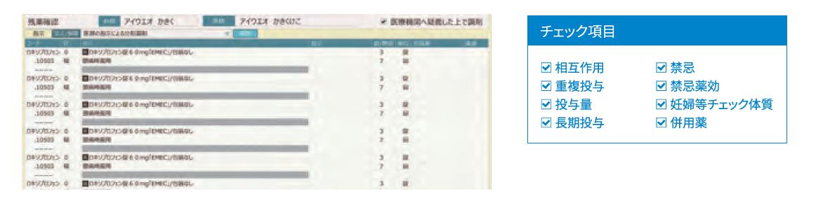 レセコン側の業務にかかわらず、過去処方チェックなど実運用に合わせた対応が可能です。